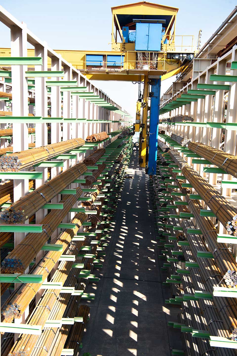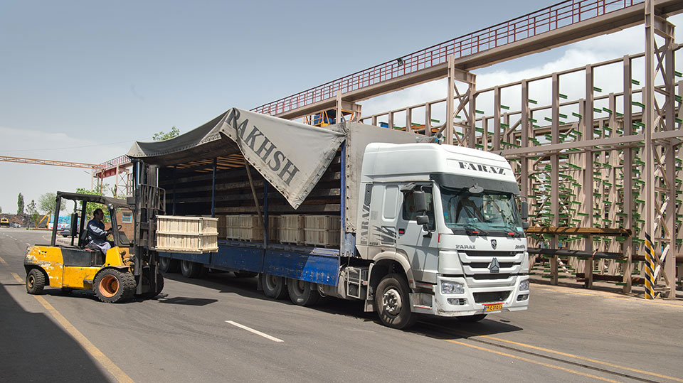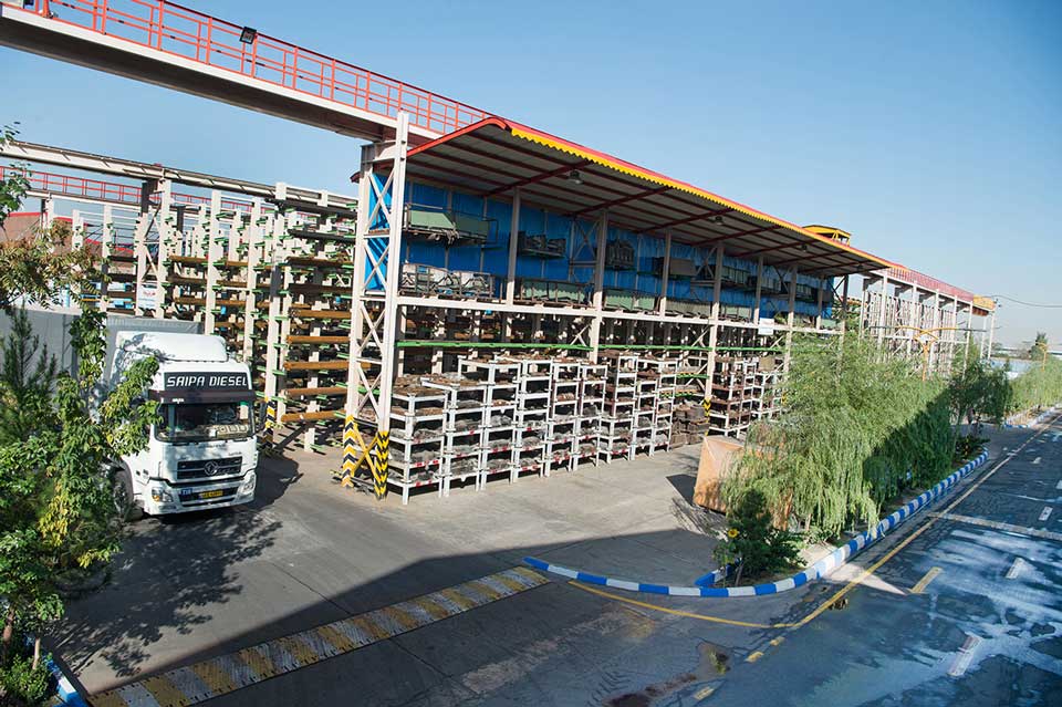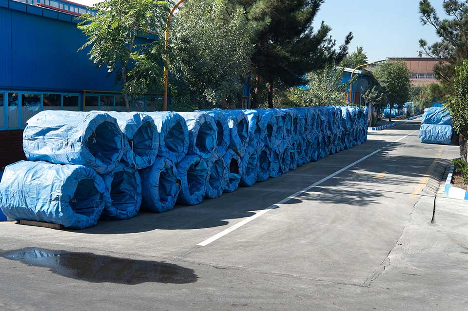 انبار مواد اولیه، حدود ۷۵۰۰ متر مربع سوله مسطح وحدود ۵۰۰۰ متر مربع فضای سرباز قفسه بندی شده
